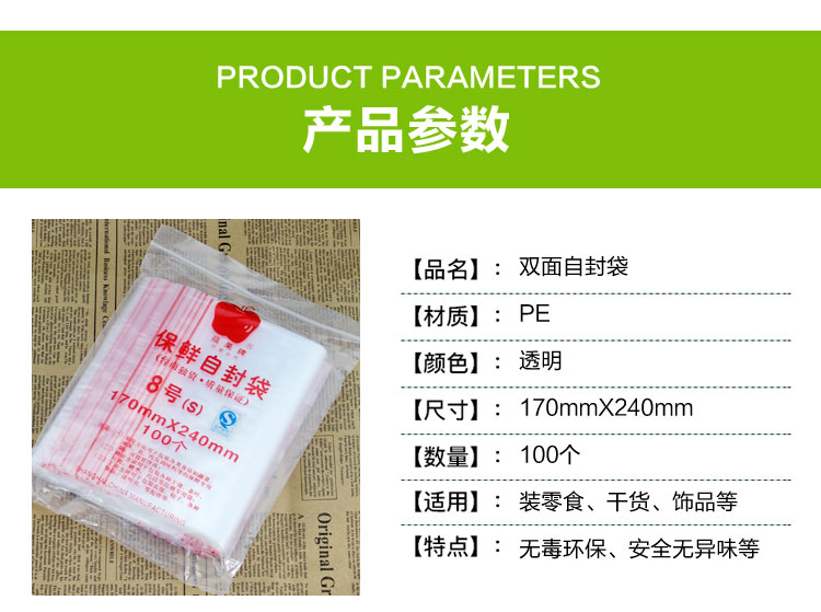 1.家庭方面用于包裝各類食品如蔬菜 水果 魚 肉及調(diào)味料等的保鮮專用袋 可放置冰箱 冰柜 冷藏 冷凍